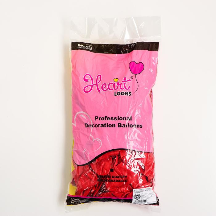 Шар латексный сердце 12", стандарт, набор 100 шт, цвет красный