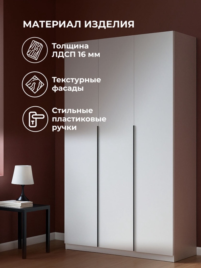 Технические характеристики Шкаф трёхстворчатый «Даиго», 1201×506×2216 мм, цвет белый текстурный