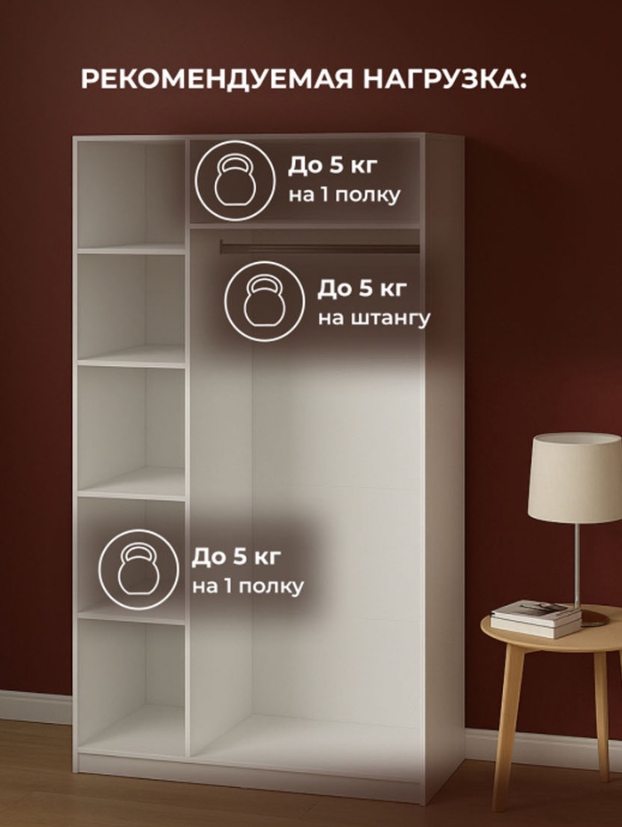 - Максимальная нагрузка на полку: 5 кг — оптимальна для хранения одежды, белья или декоративных предметов.
