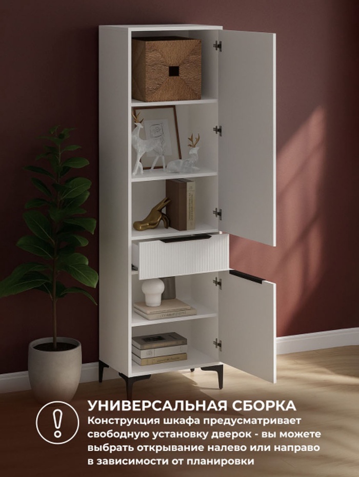 Шкаф – пенал «Иадама», 550×403×1960 мм, цвет белый/белый глянцевый