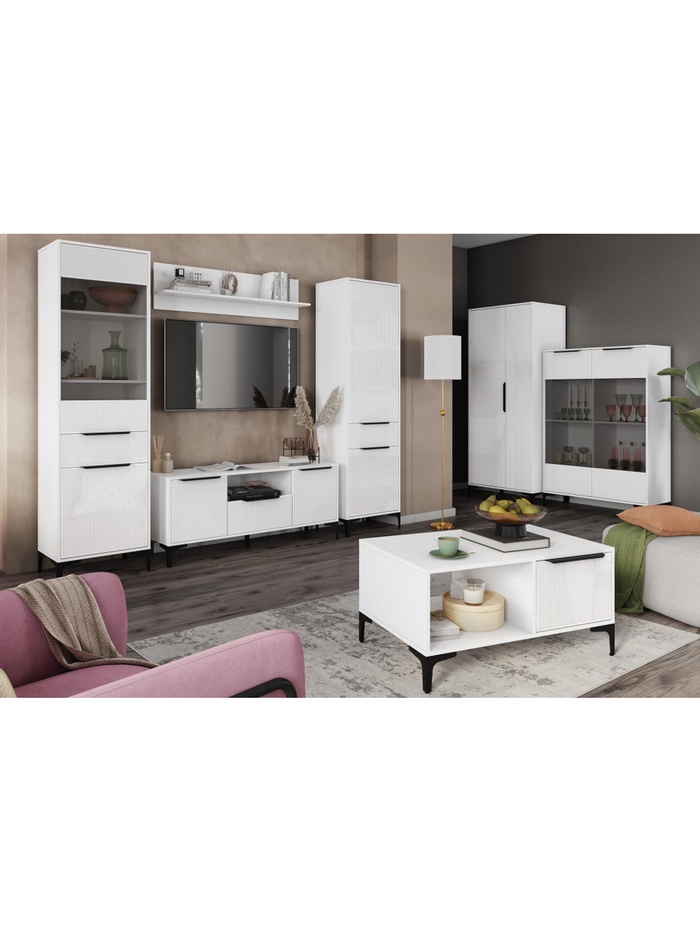 Сочетает рифлёные фасады из МДФ с прочным корпусом из ЛДСП 16 мм. Модель подходит для хранения одежды, аксессуаров и предметов быта, обеспечивая удобный доступ и практичное использование пространства.