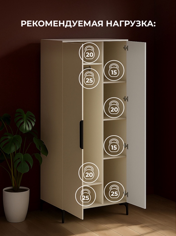 Технические характеристики Шкаф Иадама двухстворчатый кашемир / кашемир