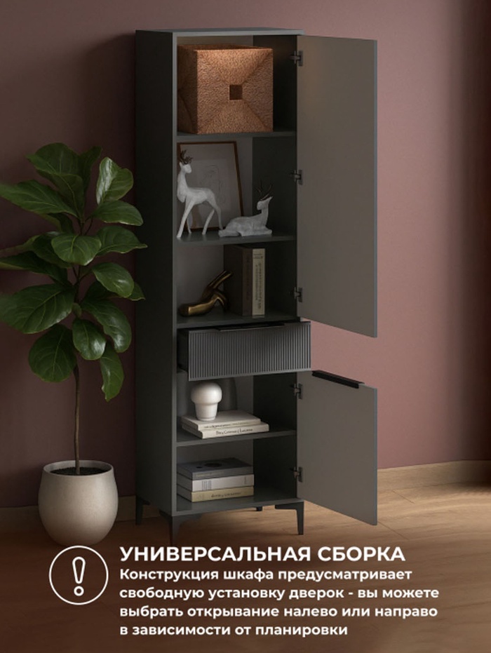Шкаф – пенал «Иадама», 550×403×1960 мм, цвет графит/графит софт
