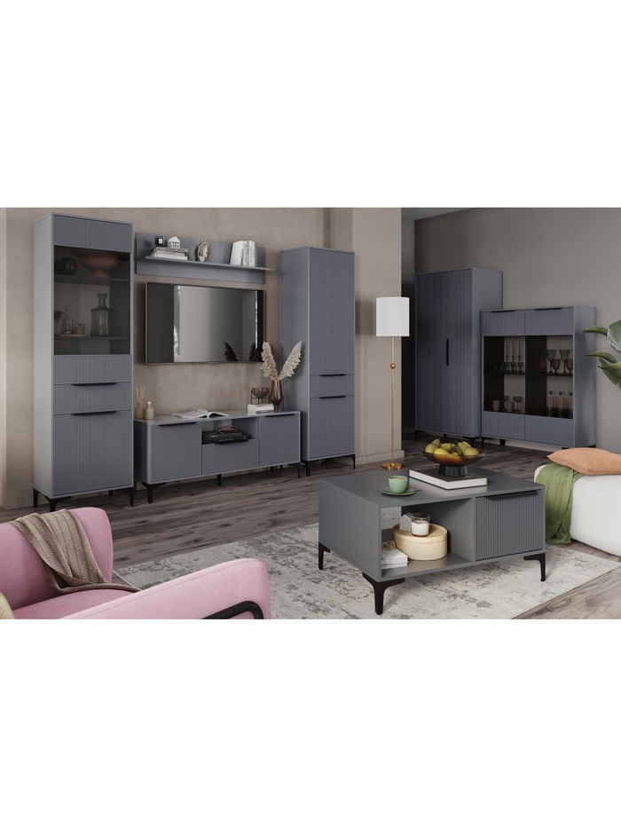 Сочетает рифлёные фасады из МДФ с прочным корпусом из ЛДСП 16 мм. Модель подходит для хранения одежды, аксессуаров и предметов быта, обеспечивая удобный доступ и практичное использование пространства.
