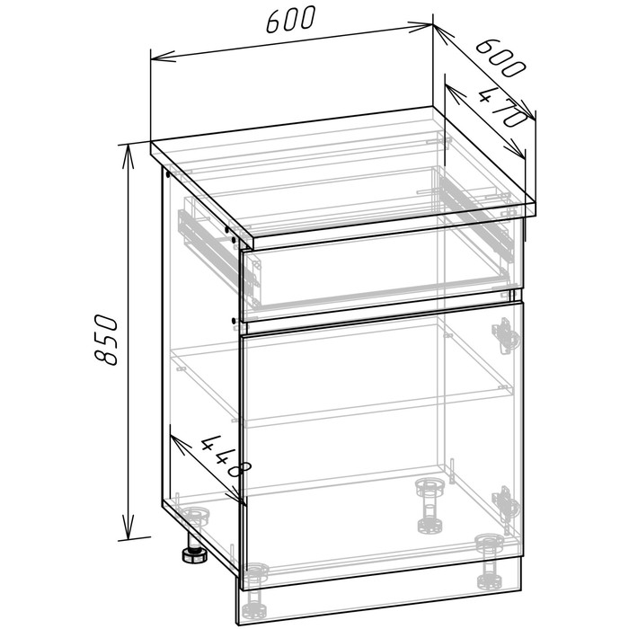 Технические характеристики Шкаф напольный «Зара», 1 ящик, 1 створка, 600×600×850 мм, цвет белый