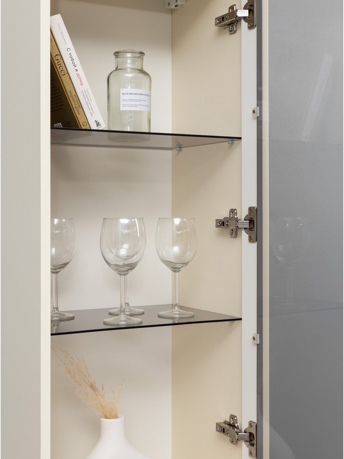 Качественная фурнитура с доводчиками обеспечивает плавное и бесшумное закрытие, делая использование шкафа максимально комфортным.