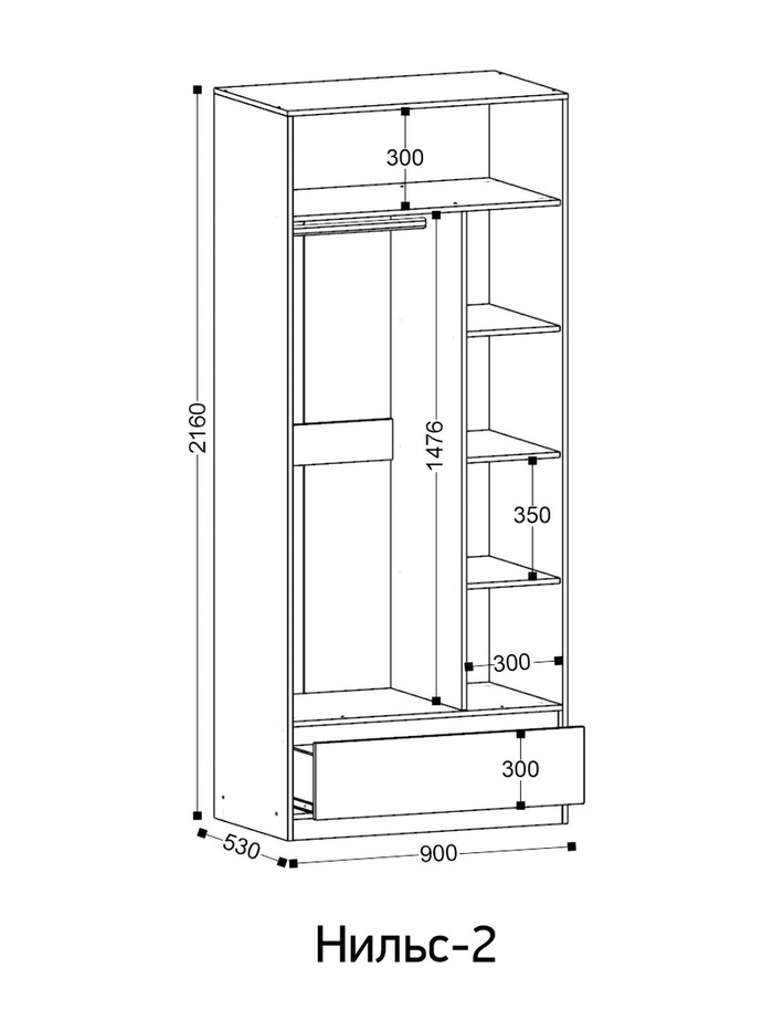 Технические характеристики Шкаф Нильс-2 дуб эльза / темно серый лофт