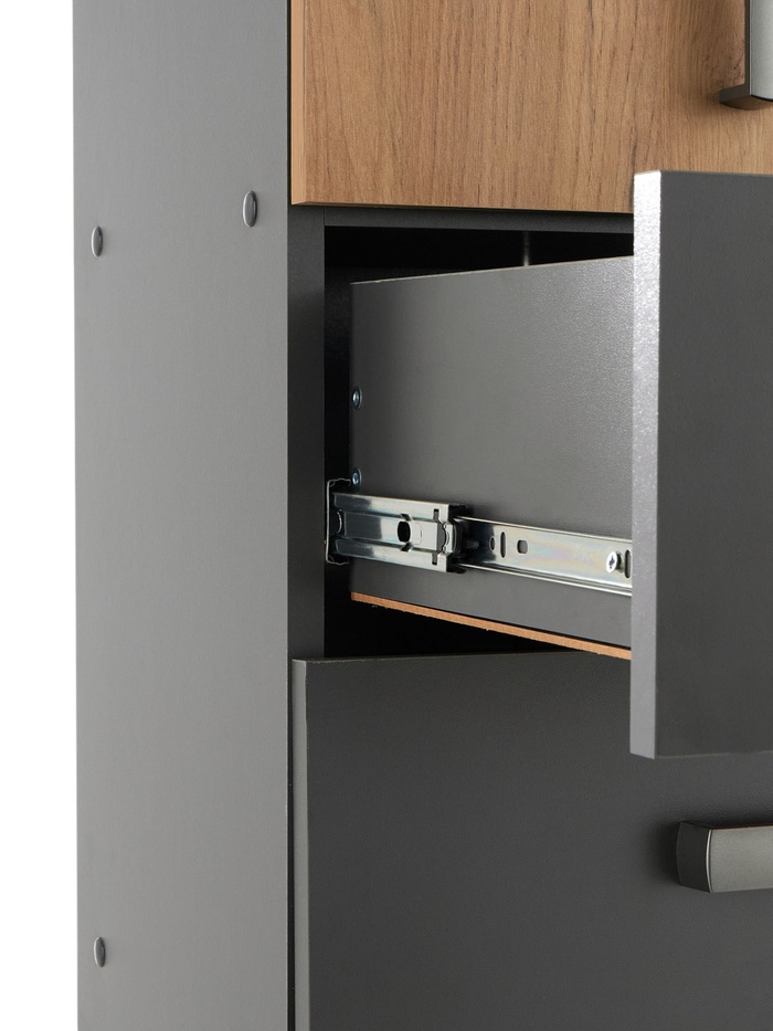 - Шариковые направляющие: плавное и полное выдвижение ящиков без перекосов