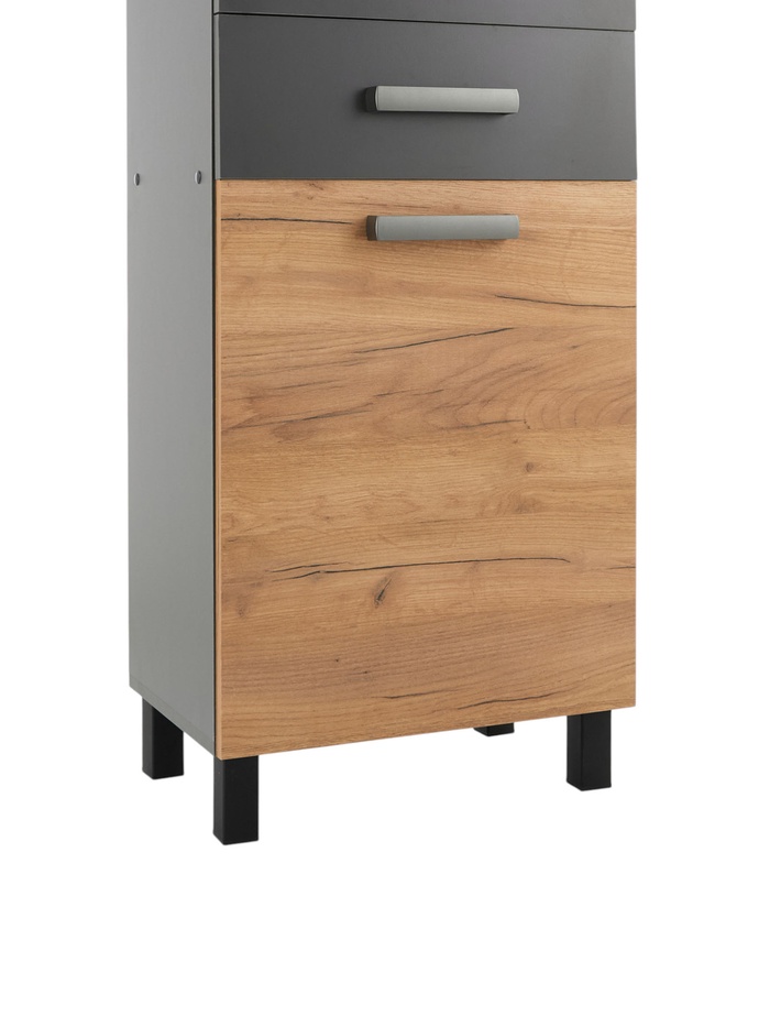 Технические характеристики Шкаф – пенал для ванной комнаты «Пронто», с корзиной для белья, 500×330×1850 мм, цвет графит/дуб золотой