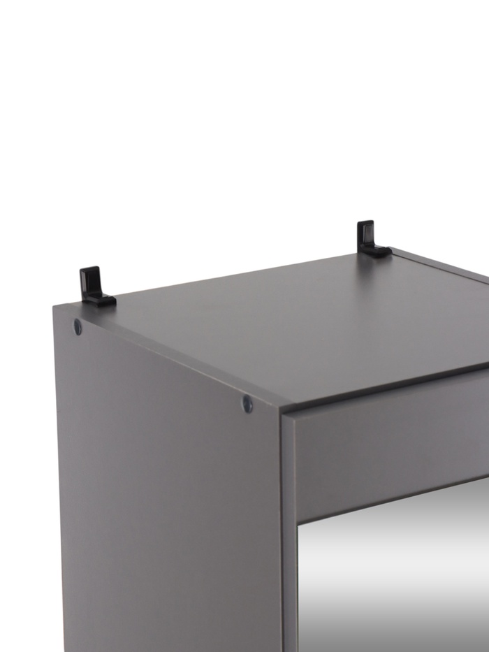 Модель выполнена в стиле минимализма. Строгая геометрия и отсутствие лишних деталей формируют аккуратный внешний вид и позволяют гармонично вписать шкаф в современное пространство.