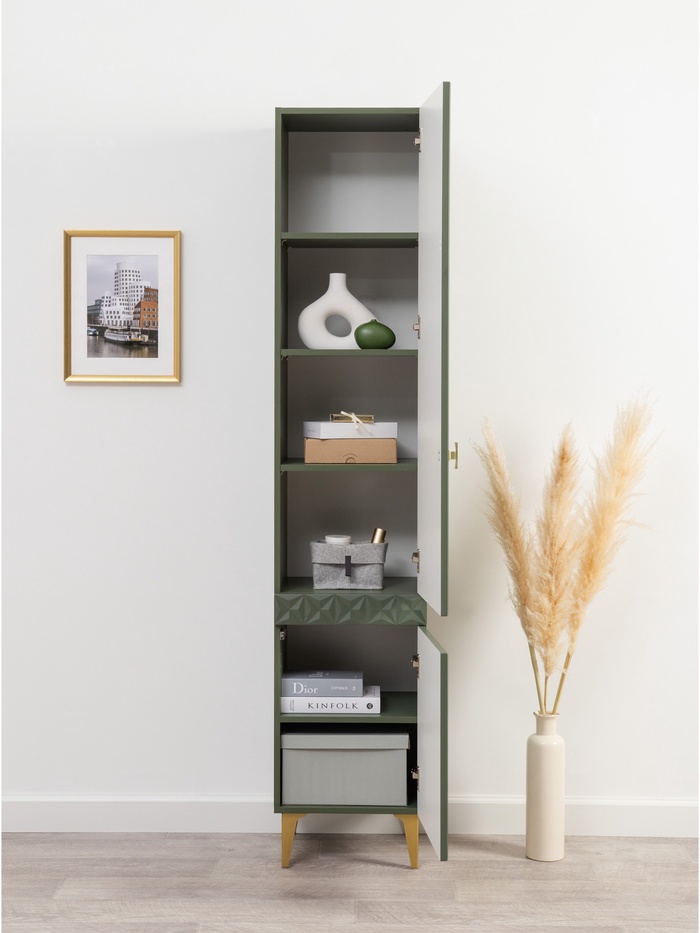 Шкаф-пенал «Марион» дымчатый зелёный / олива шагрень