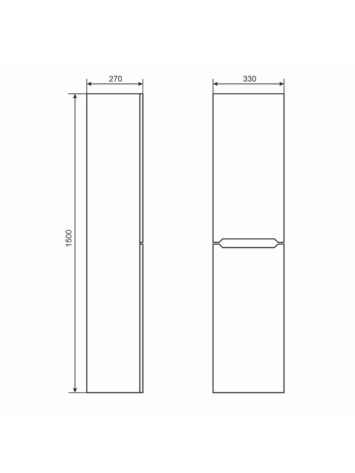 Технические характеристики Шкаф — пенал навесной для ванной Uperwood Tanos, 330×255×1500 см, цвет чёрный