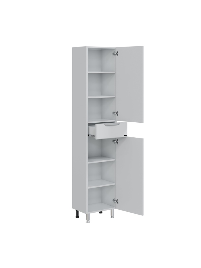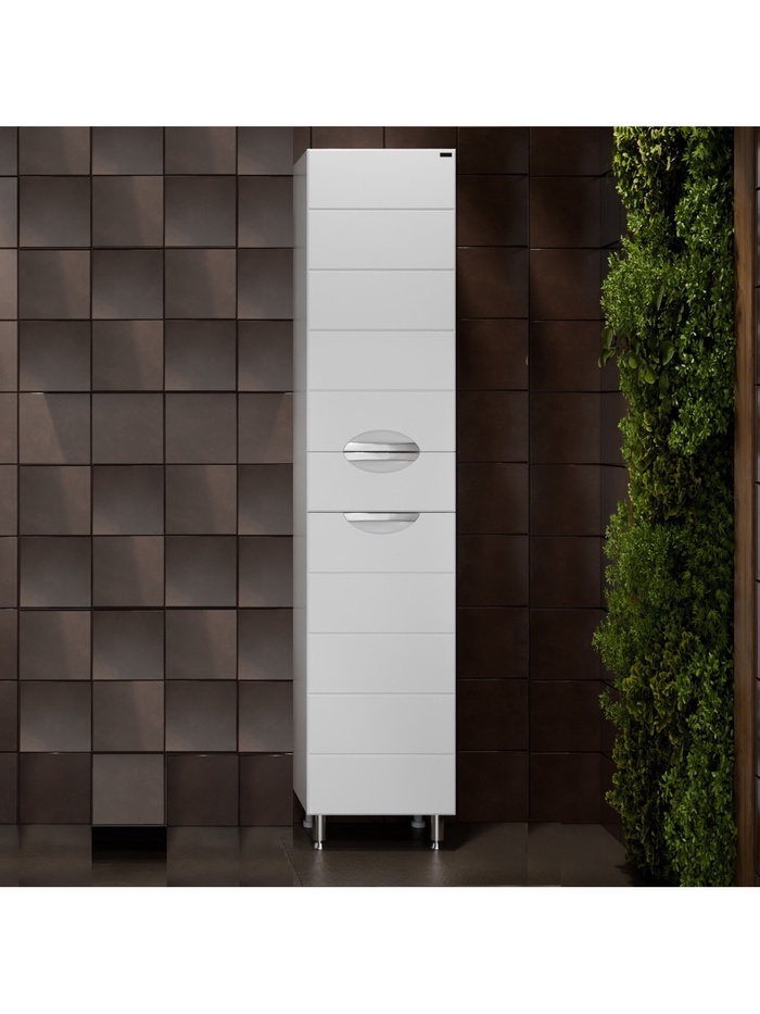 Напольный шкаф-пенал для ванной комнаты, предназначенный для хранения бытовых принадлежностей и организации пространства. Подходит для установки отдельно или в комплекте с тумбами из коллекции Родос.
