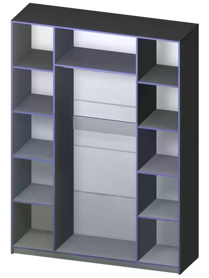 - Комбинированная система хранения: внутреннее наполнение включает полки для сложенных вещей и штангу для одежды на плечиках.