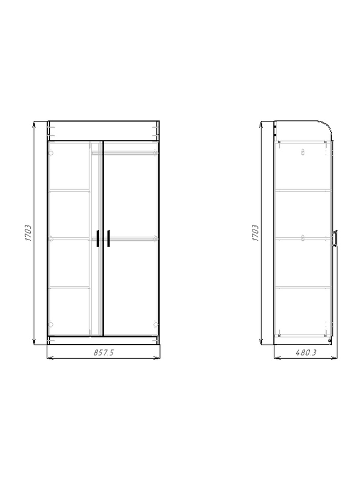 - Функциональное наполнение: две штанги для одежды, три съёмные полки и защитный борт с трёх сторон.