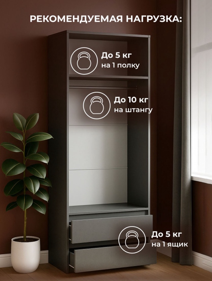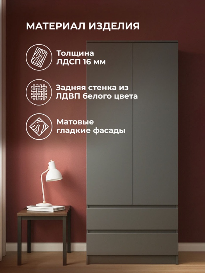 Шкаф двухстворчатый «Сибити», 801×462×2052 мм, цвет графит серый – сочетает практичность и удобство в использовании. Подходит для повседневного использования и легко вписывается в интерьер дома или офиса.