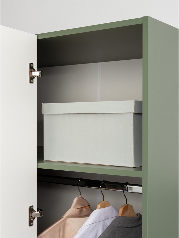 Фасады с глубокой фрезеровкой из МДФ подчёркивают классический стиль, а сочетание оттенков «Дымчатый зелёный» и «Олива шагрень» создаёт выразительный и благородный образ. Насыщенный зелёный тон добавляет интерьеру глубину и уют.