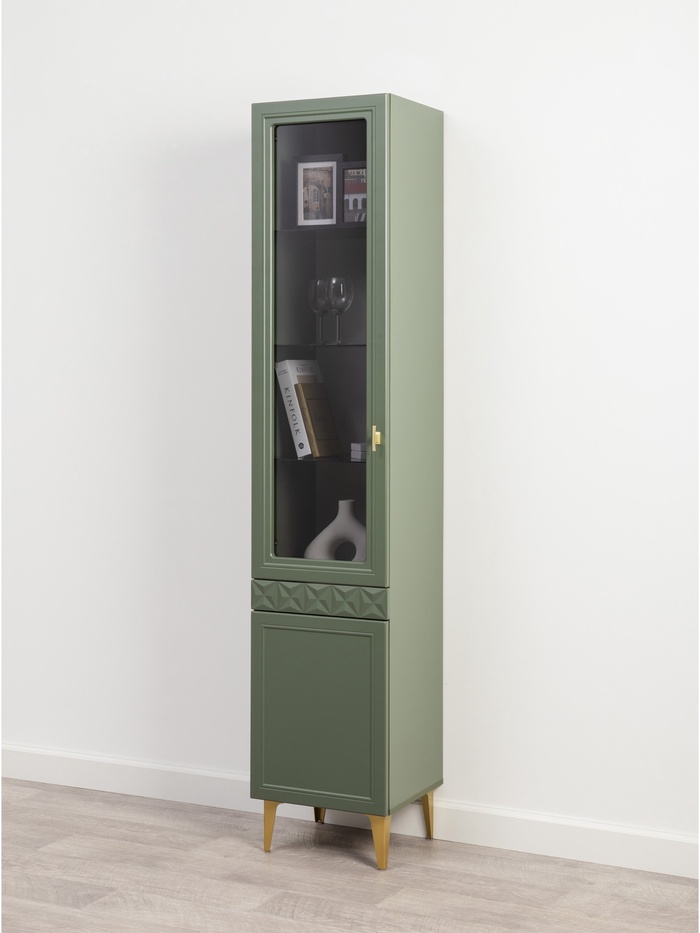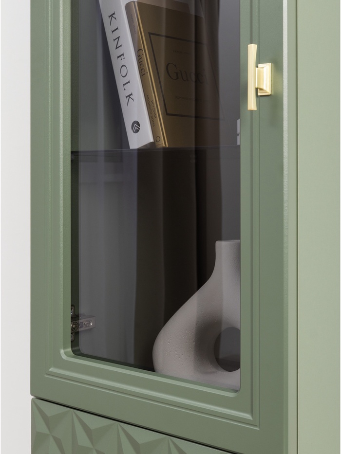 Шкаф – витрина «Марион 16.397.01», 400×369×2000 мм, цвет дымчатый зеленый / олива шагрень