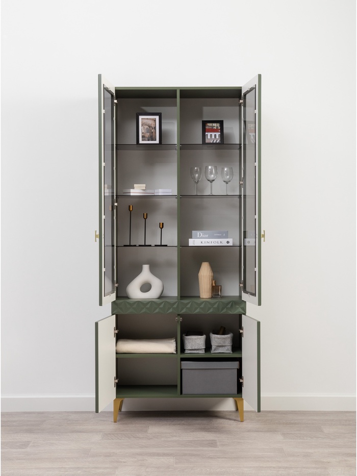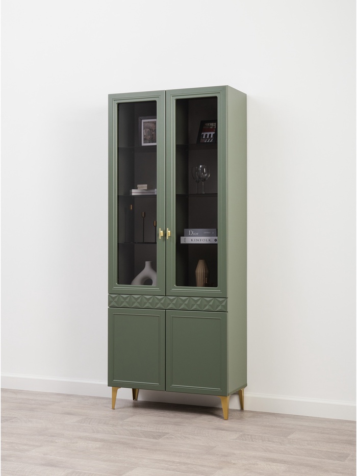 Шкаф-витрина «Марион» дымчатый зелёный / олива шагрень