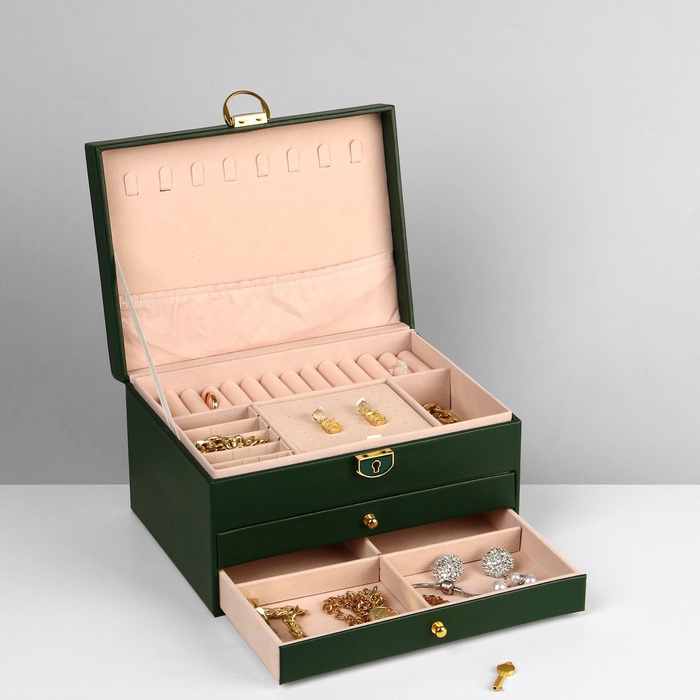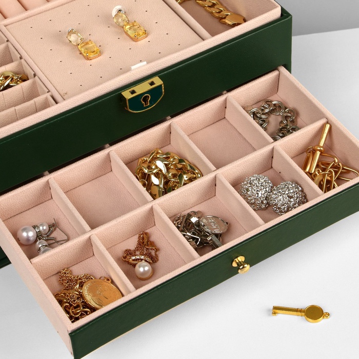 Шкатулка 3 яруса, 23×17×13 см, зелёная