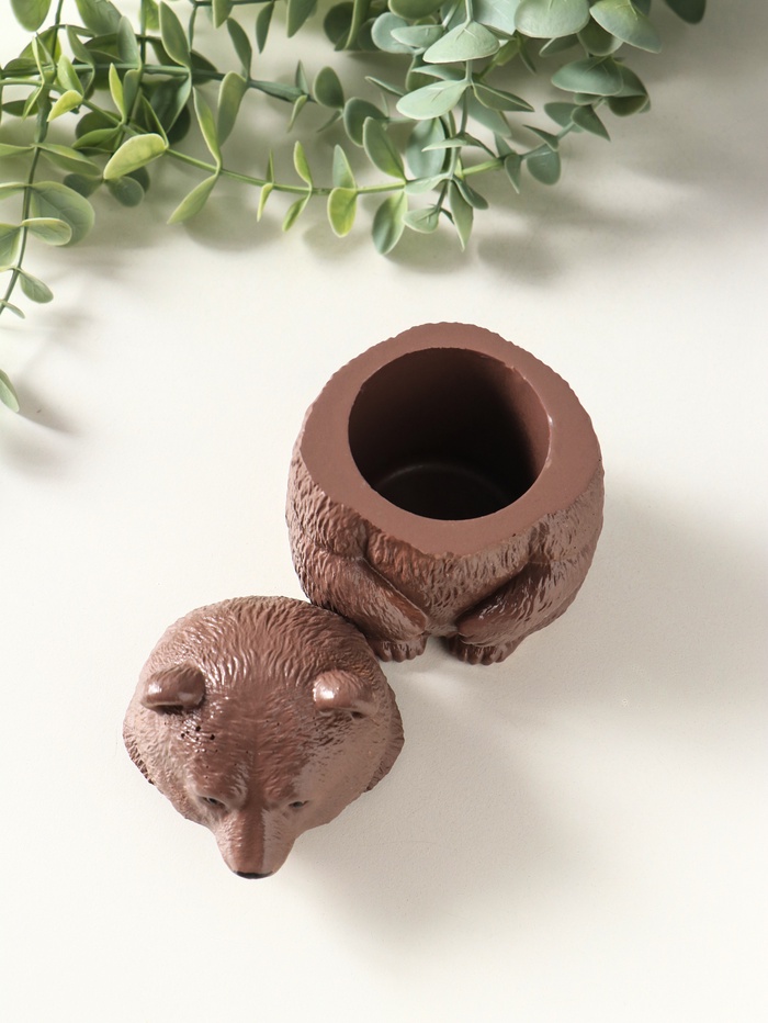 Эта фигурная шкатулка в виде медведя станет надёжным хранителем для ваших драгоценностей и памятных мелочей. Тёплый коричневый цвет и выразительная текстура создают ощущение уюта и связи с природой. Компактный размер делает её идеальным решением для организации косметического столика, прикроватной тумбочки или рабочего стола.