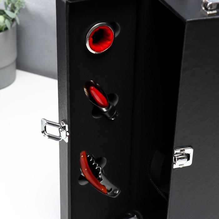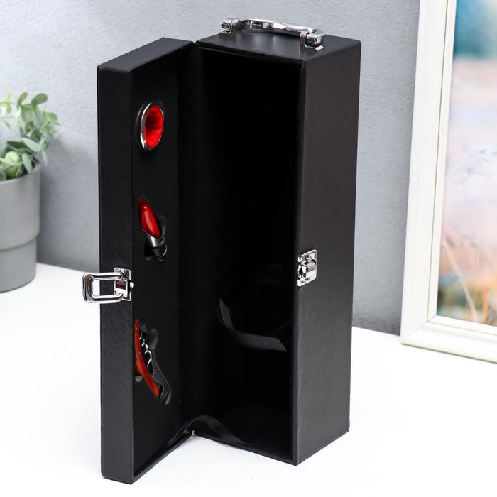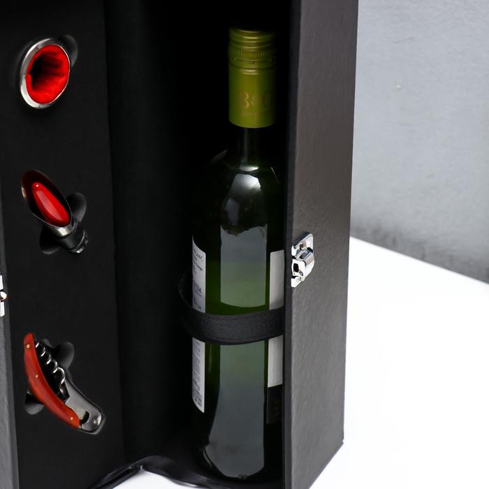 Шкатулка подарочная под бутылку «Гладкая кожа», набор 3 предмета внутри, 35×11×12 см