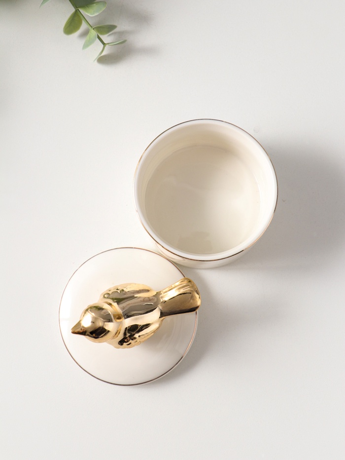 Эта керамическая шкатулка для хранения украшений — маленький шедевр, созданный, чтобы беречь ваши драгоценности и воспоминания. Её лаконичная круглая форма и тёплый бежевый фон создают ощущение уюта, а изящная золотая линия и фигурка птички добавляют ноту нежности и лёгкости. Это универсальный подарок, который подчеркнёт чуткость дарителя и станет изящным акцентом на туалетном столике.