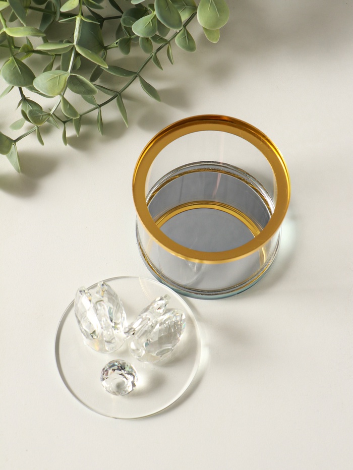 Эта стеклянная шкатулка с лебедем — элегантный способ хранить и преподносить драгоценности. Её прозрачные стенки и золотой ободок создают эффект хрустального футляра, где каждое украшение становится центром внимания. Изящные фигурки птицы на крышке превращает простой аксессуар в символ нежности и верности, делая её осмысленным подарком для особых моментов.
