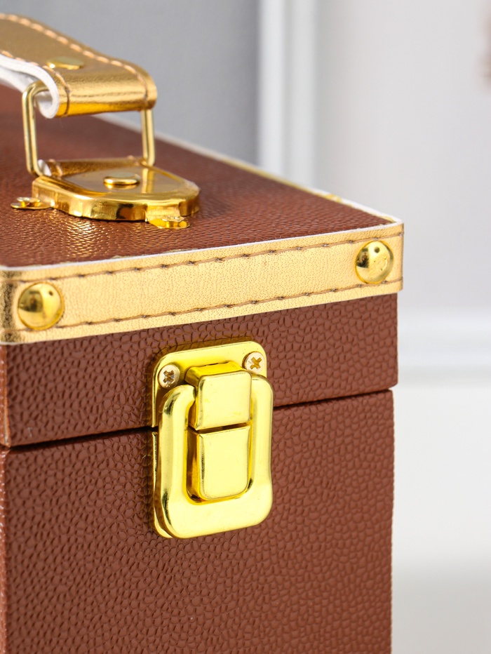 Эта шкатулка для драгоценностей — надёжный хранитель ваших сокровищ. Её классический дизайн в оттенке молочного шоколада и мягкая внутренняя отделка создают ощущение уюта и заботы о каждой вещице. Компактный размер делает её идеальным решением для порядка на туалетном столике или в дорожной сумке.