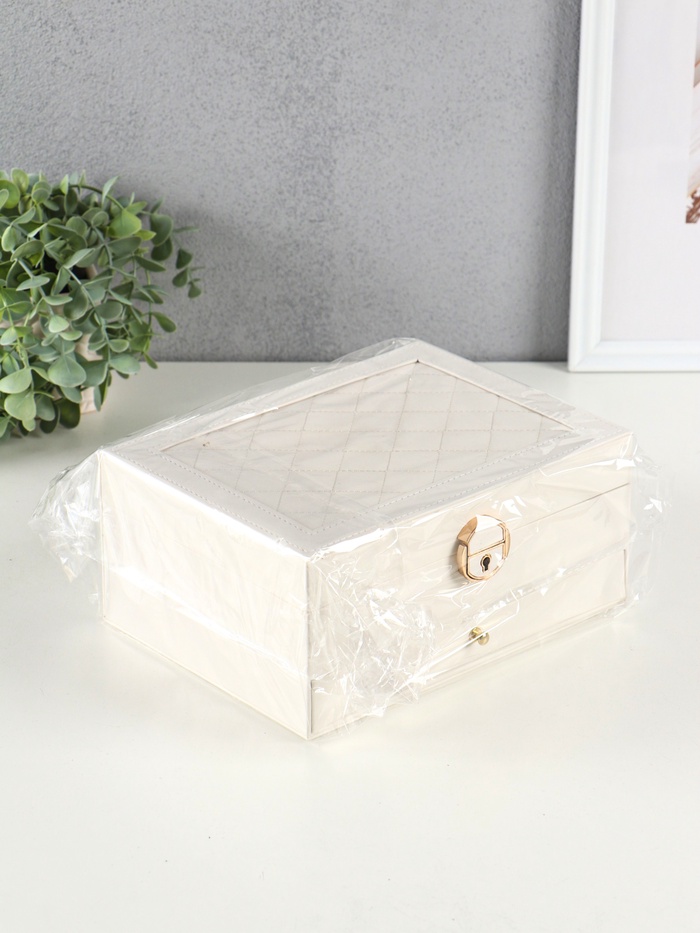 Эта двухъярусная белая шкатулка — аккуратный и продуманный дом для вашей коллекции украшений. Её компактные размеры экономят место на туалетном столике, сохраняя порядок в серьгах, кольцах и браслетах.