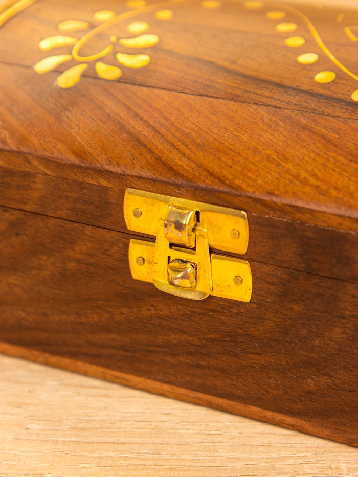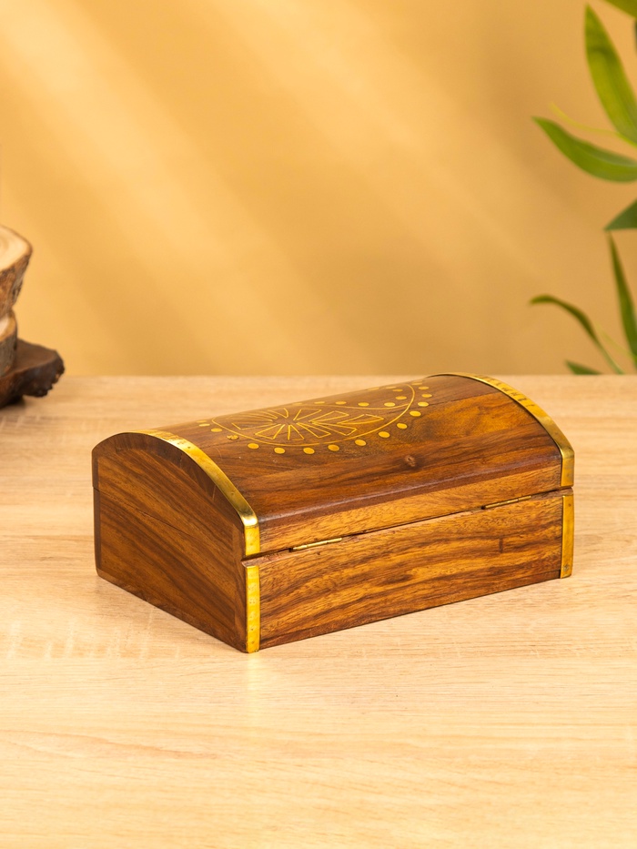 Шкатулка «Глу», 18×12.8×8 см, дерево шишам, латунь