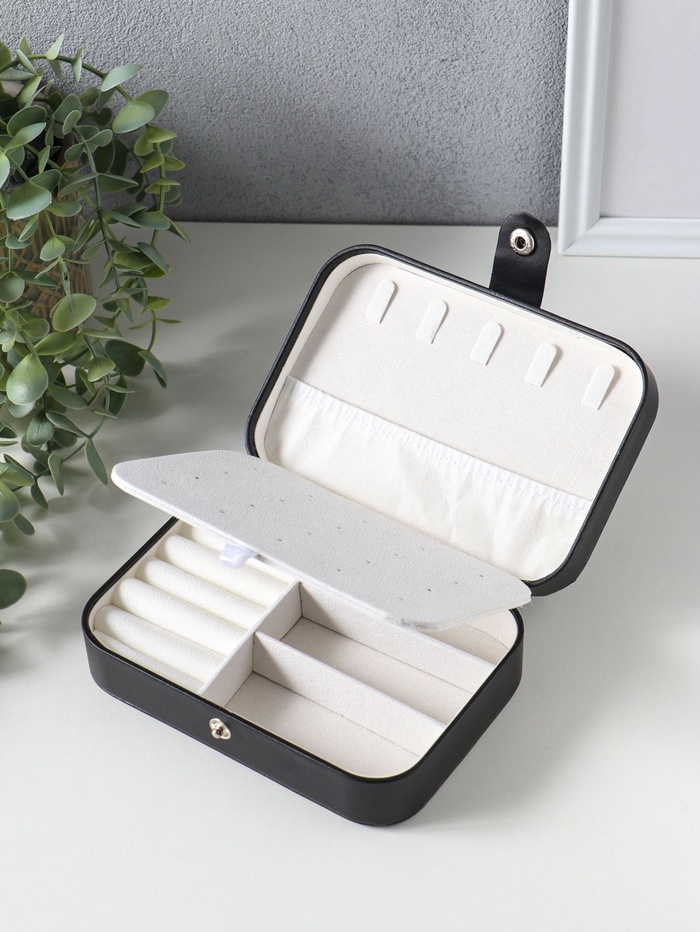 Эта чёрная шкатулка для драгоценностей — стильное и практичное решение для хранения вашей коллекции. Её матовая фактура и лаконичный дизайн создают ощущение утончённого порядка. Внутри достаточно места, чтобы разложить кольца, серьги, цепочки и браслеты, защитив их от пыли и спутывания. Шкатулка станет элегантным подарком на 8 Марта или для любого повода, когда хочется подчеркнуть заботу и внимание к деталям.