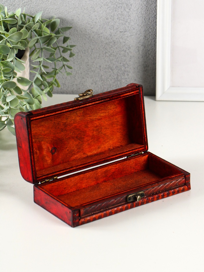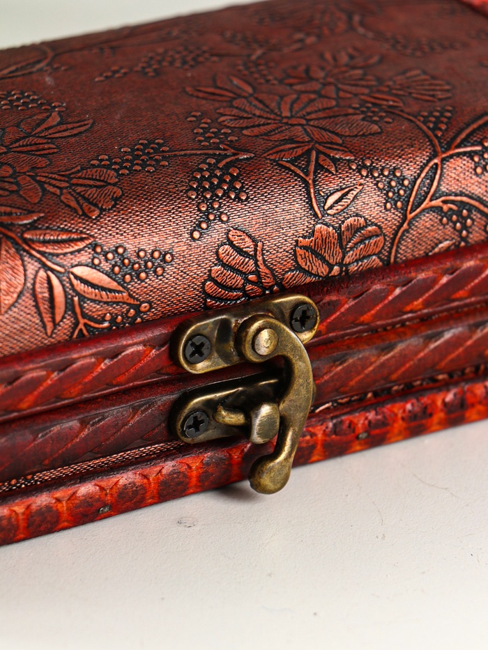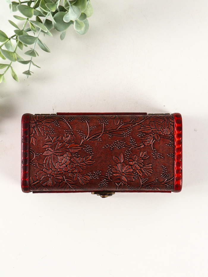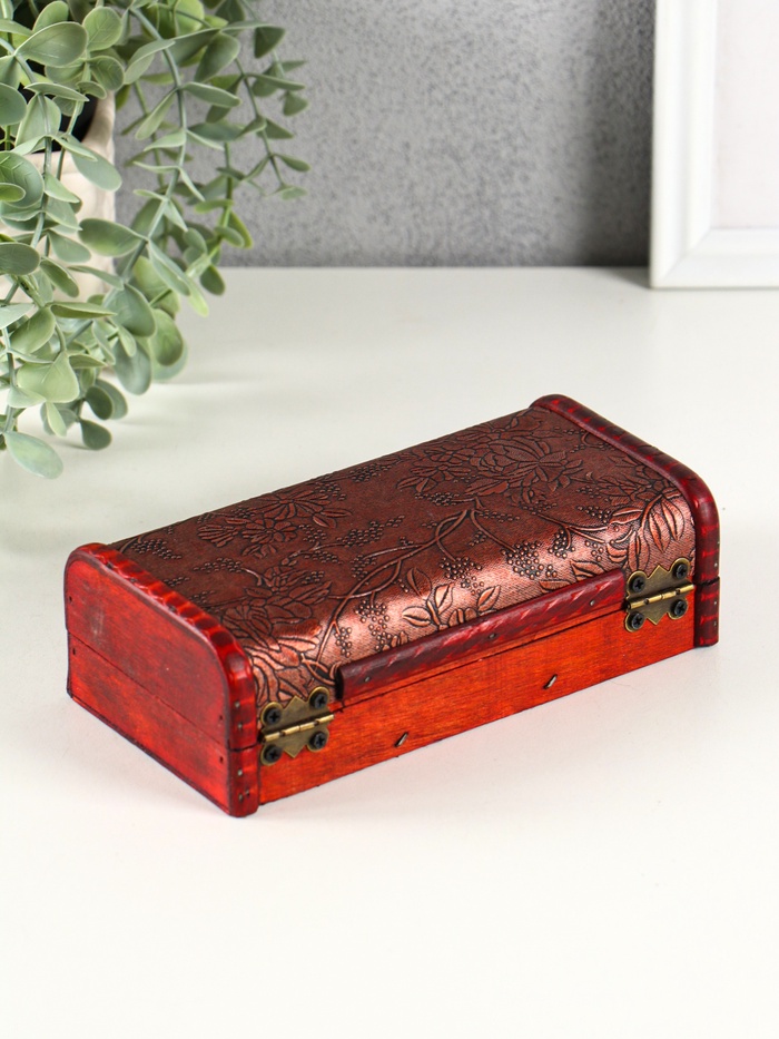 Эта деревянная шкатулка — место, где ваши ценности обретают дом. Компактный прямоугольный ларец с отделкой под кожу хранит не только вещи, но и моменты. Его растительный орнамент наполняет пространство теплом природы.