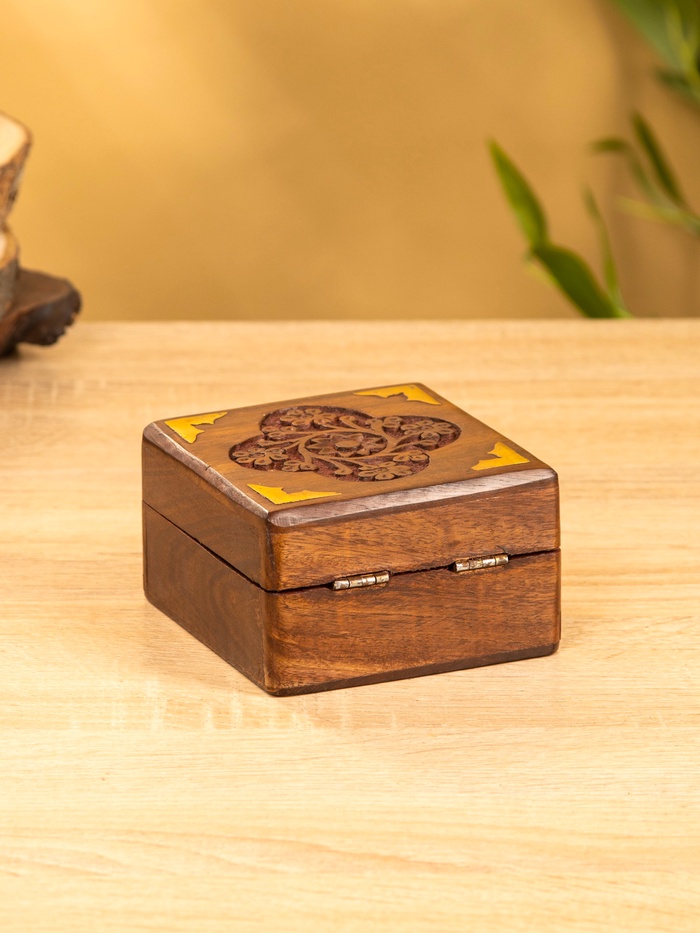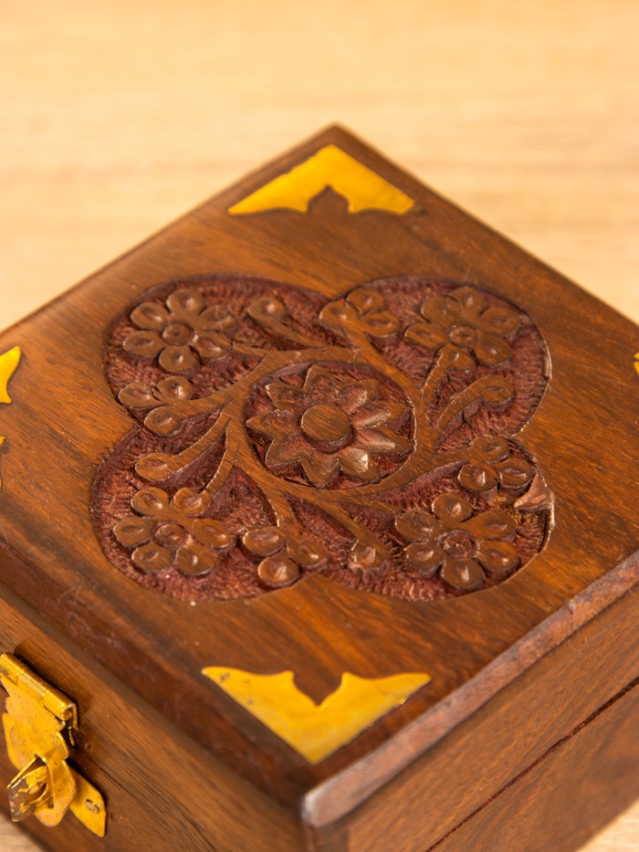 Шкатулка квадратная с замочком, 10×10×6 см, дерево шишам, латунь