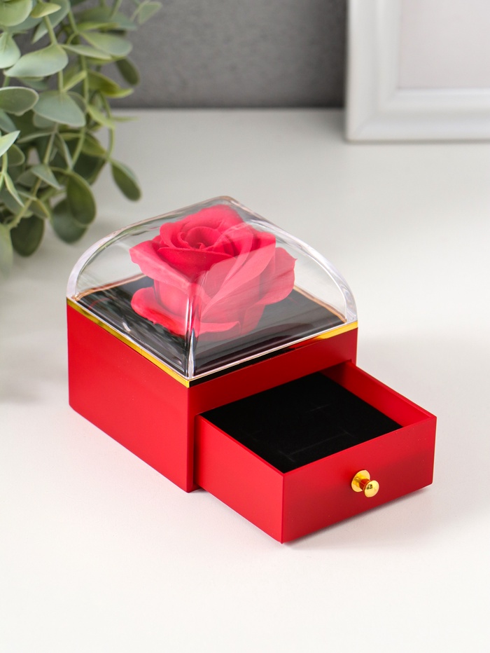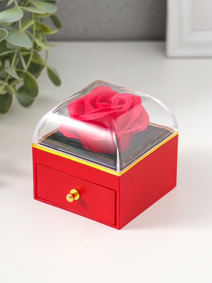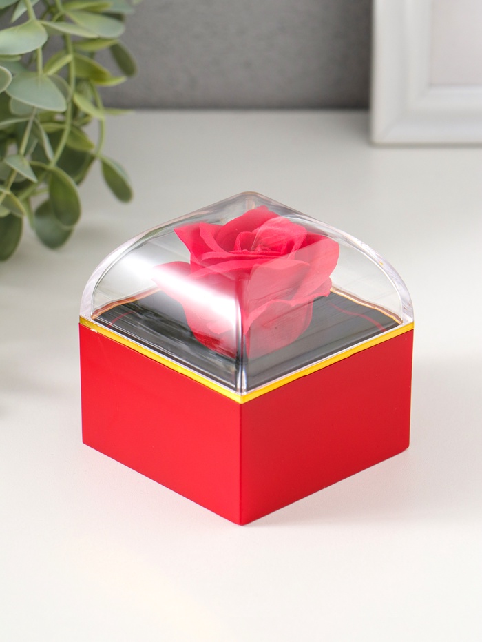 Шкатулка для украшений «Роза в футляре», подарочная, пластик, красная, 6.8×6.8×7.5 см