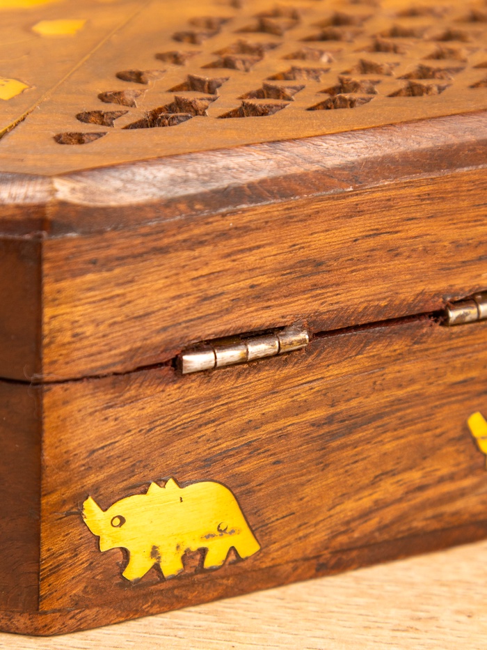 Технические характеристики Шкатулка резная "Слоник в саду" 15х10х5 см, дерево шишам