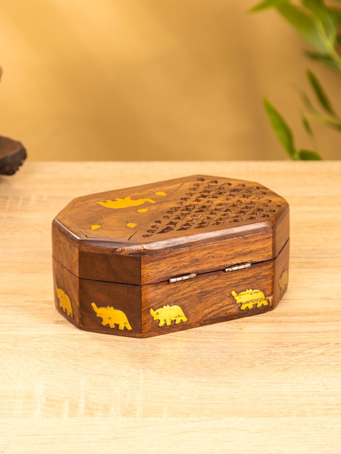 Шкатулка резная "Слоник в саду" 15х10х5 см, дерево шишам