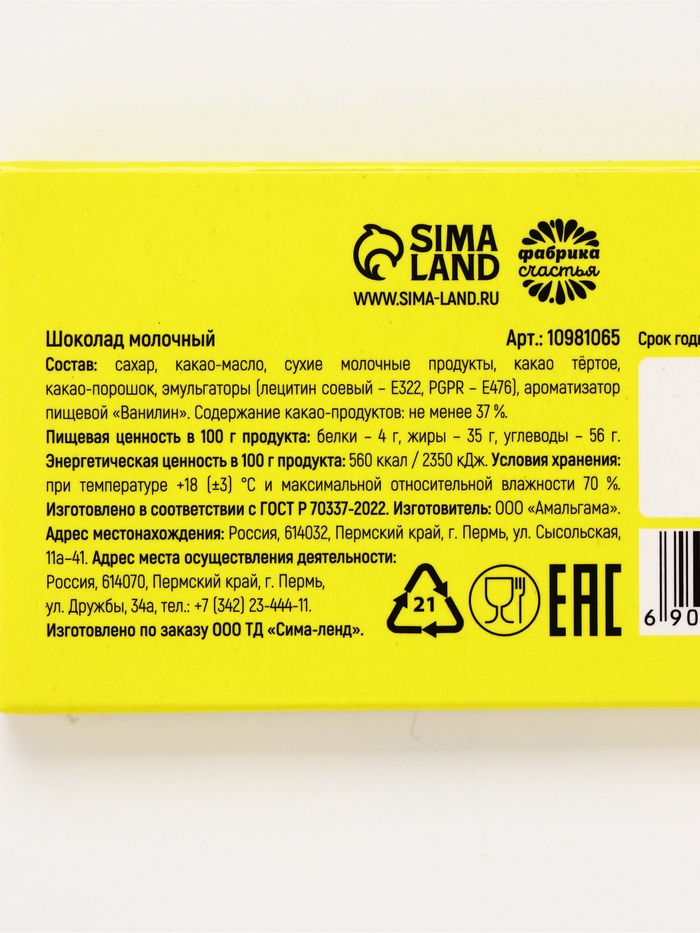 | Вид шоколада | Молочный |