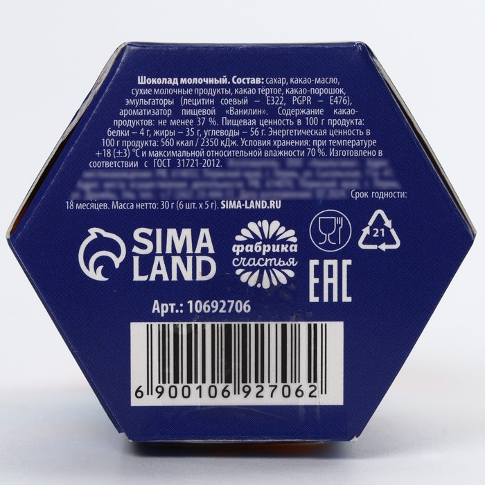 Шоколад молочный «Маленькому путешественнику», 5 г × 6 шт.