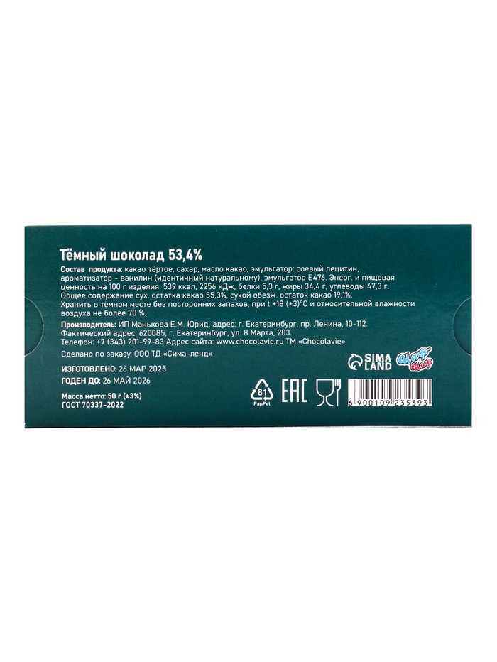 Технические характеристики Шоколад темный «Дед Мороз», 50 г