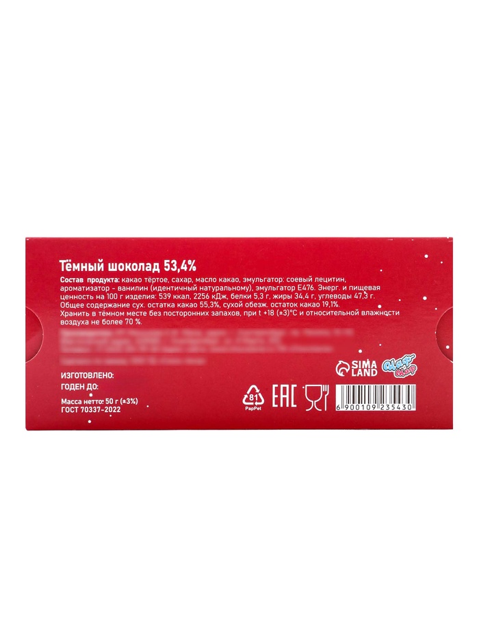 Технические характеристики Шоколад темный «С Новым годом», 50 г