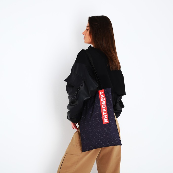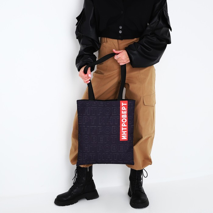 Шопер «Интроверт», без молнии, без подкладки, цвет чёрный
