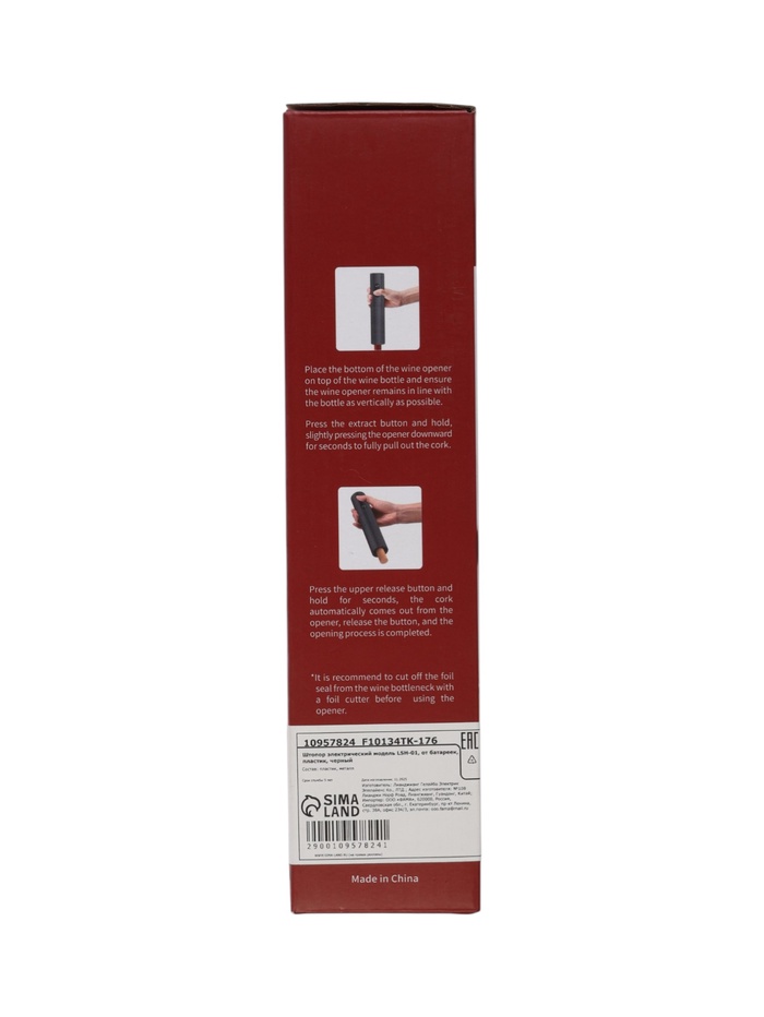 Технические характеристики Штопор электрический LSH-01, от батареек, пластик, черный