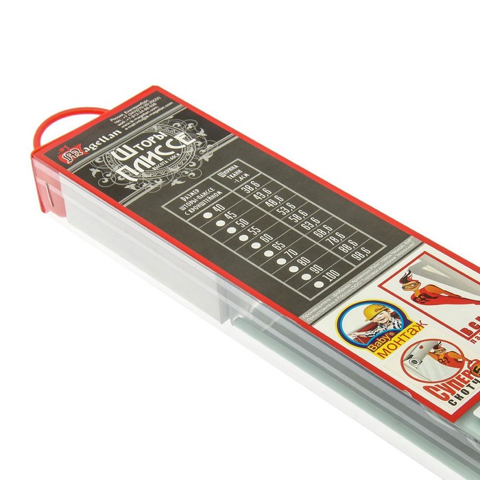 - фурнитура для фиксации шторы на раме параллельно окну: стопор с суперскотчем, зацеп-фиксатор на планку-отвес для лески, леска, держатель шторы.