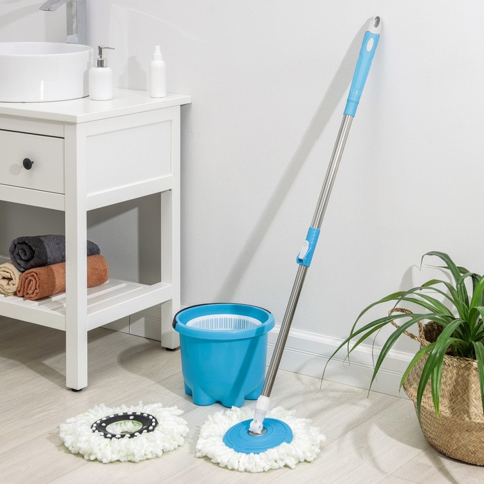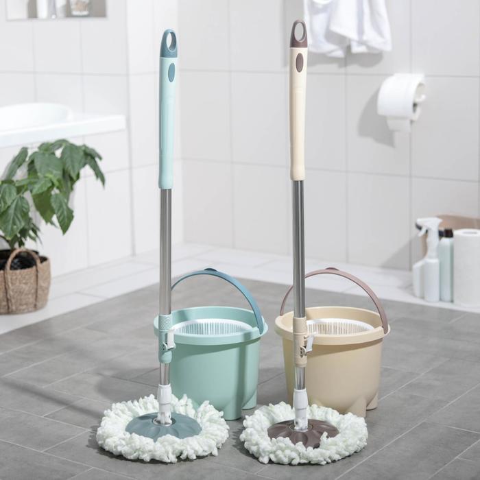 Швабра с отжимом и ведро с пластиковой центрифугой мини: ведро 7.2 л, швабра 113 см, запасная насадка из микрофибры, цвет МИКС