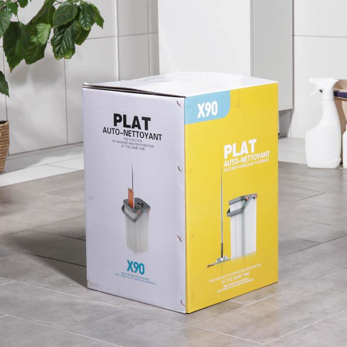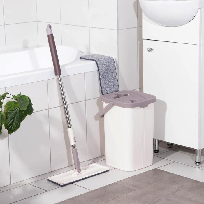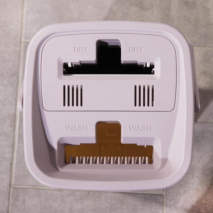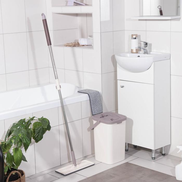 Швабра с отжимом и ведро: швабра плоская 80-132 см, ведро с отсеками для полоскания и отжима 25×25х×37 см, 2 насадки из микрофибры 32×12 см