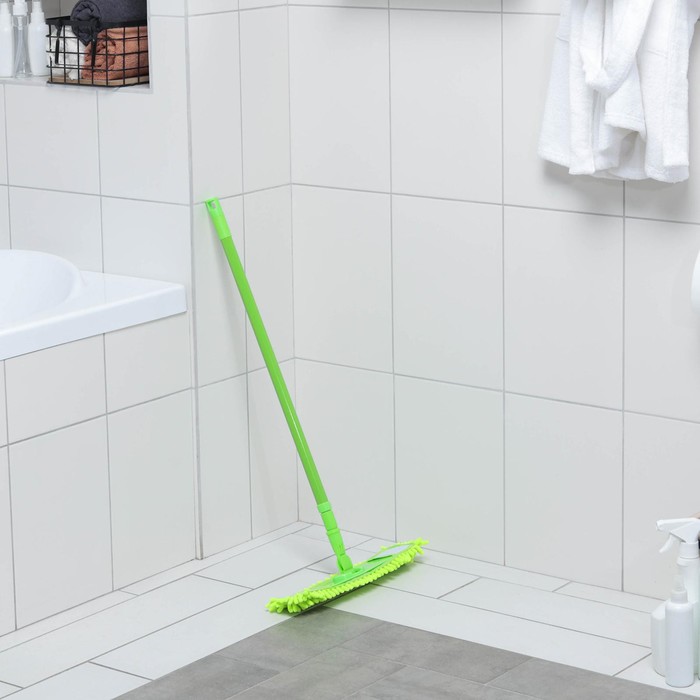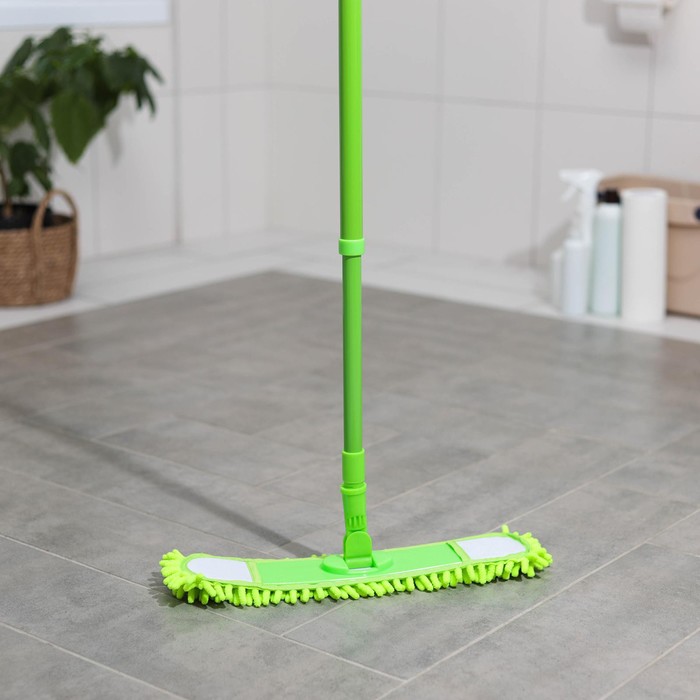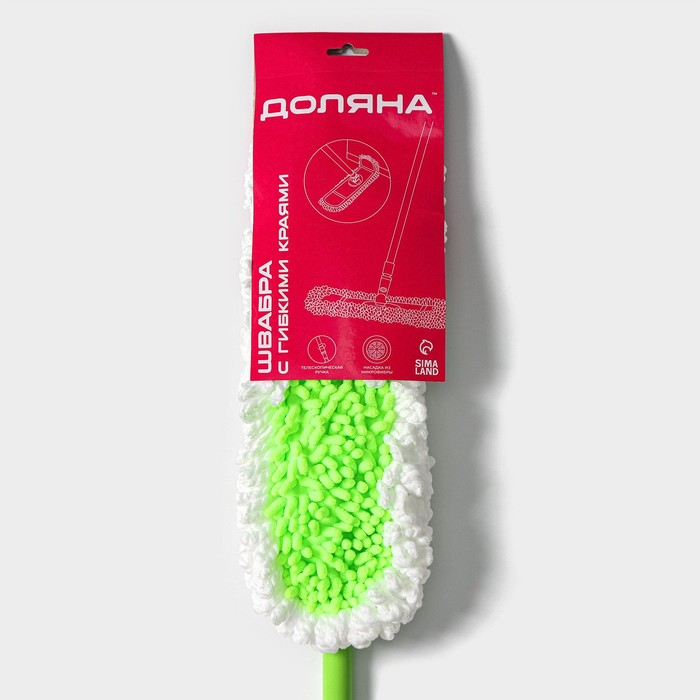 Технические характеристики Швабра для мытья пола плоская Доляна, насадка из микрофибры 38×8 см, гибкие края, телескопическая ручка 80-120 см