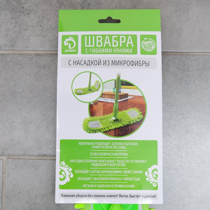 - благодаря гибким краям швабры, вы с лёгкостью сможете вымыть лестницы и плинтусы.