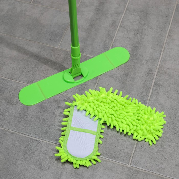 Швабра для мытья пола плоская Доляна, насадка из микрофибры 38×8 см, гибкие края, телескопическая ручка 80-120 см