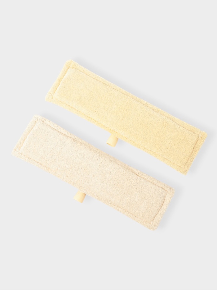 - Плоская насадка из микрофибры с установочным размером на основание швабры 40×10 см собирает пыль и влагу.